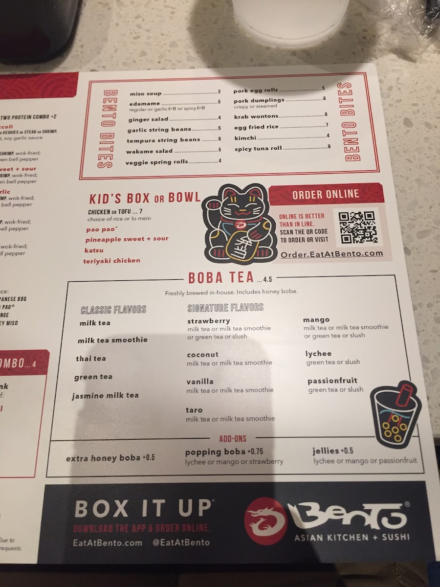 BENTO Winter Park Menu